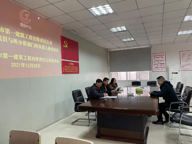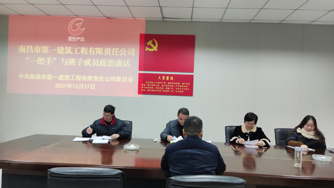 為切實加強黨的政治建設(shè),推動上級“一把手”抓好下級“一把手”,深化同級監(jiān)督,發(fā)揮黨內(nèi)政治監(jiān)督談話在從嚴教育管理監(jiān)督干部中的作用。根據(jù)《南昌國資產(chǎn)業(yè)經(jīng)營集團有限公司2021年度政治談話工作方案》(洪國產(chǎn)黨字【2021】120號)文件精神,一建公司黨委于2021年12月27-28日開展了政治談話。
