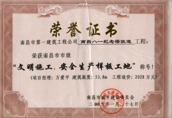 八一紀(jì)念塔——文明施工、安全生產(chǎn)樣板工地