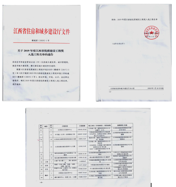 為創(chuàng)建精品工程,開工之初我公司就確立了本工程確保“省優(yōu)”,爭創(chuàng)“杜鵑花杯”的質(zhì)量目標,積極革新施工方法,應用建設部推廣的新技術、新工藝。通過公司領導大力支持,項目管理人員的不懈努力,在主體施工階段本工程獲得江西省建筑結構優(yōu)良工程獎。2016年工程順利竣工,自交付使用以來,該工程結構安全穩(wěn)定,各系統(tǒng)運轉(zhuǎn)正常,使用單位非常滿意,并得到了建設單位、監(jiān)理單位、質(zhì)監(jiān)站一致良好的評價,均力薦參評杜鵑花獎。