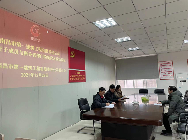 為切實加強黨的政治建設(shè),推動上級“一把手”抓好下級“一把手”,深化同級監(jiān)督,發(fā)揮黨內(nèi)政治監(jiān)督談話在從嚴教育管理監(jiān)督干部中的作用。根據(jù)《南昌國資產(chǎn)業(yè)經(jīng)營集團有限公司2021年度政治談話工作方案》(洪國產(chǎn)黨字【2021】120號)文件精神,一建公司黨委于2021年12月27-28日開展了政治談話。